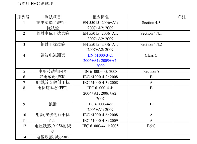 節(jié)能燈CE認(rèn)證由EMC和LVD(安規(guī))兩部分組成。節(jié)能燈的EMC和普通燈具是一樣的,EN55015.EN61547,也就是燈具CE認(rèn)證在EMC方面是相同的,只是在LVD安規(guī)部分大同小異。一般測試工程師會根據(jù)產(chǎn)品的實際情況來劃分測試標(biāo)準(zhǔn)。認(rèn)證時會對認(rèn)證產(chǎn)品進(jìn)行這兩項的單獨測試和出具測試報告,并出具證書。