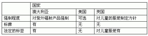 表2 澳大利亞、美國和英國對(duì)抗紫外線JZ產(chǎn)品的強(qiáng)制要求和程度