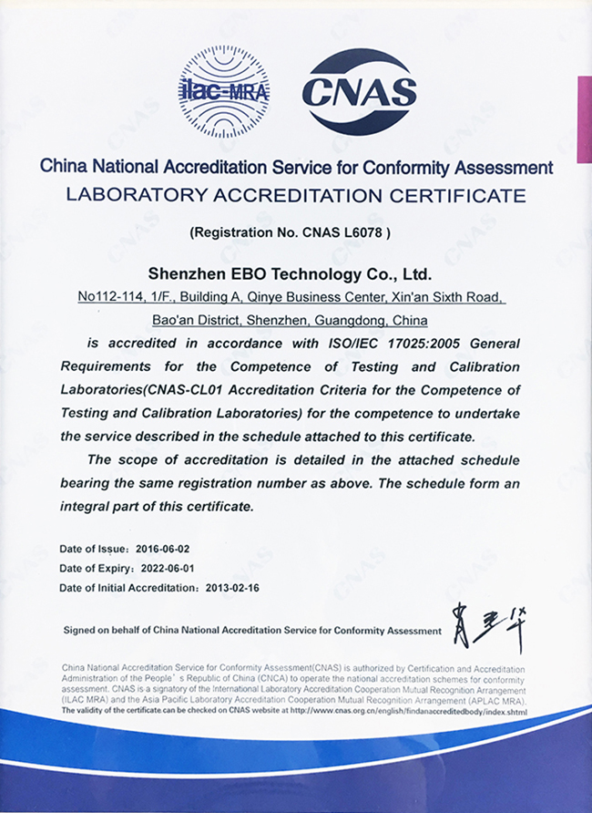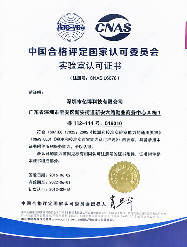中國(guó)合格評(píng)定國(guó)家認(rèn)可委員會(huì)實(shí)驗(yàn)室認(rèn)可證書-CNAS??,獲認(rèn)可能力范圍見(jiàn)證書附件